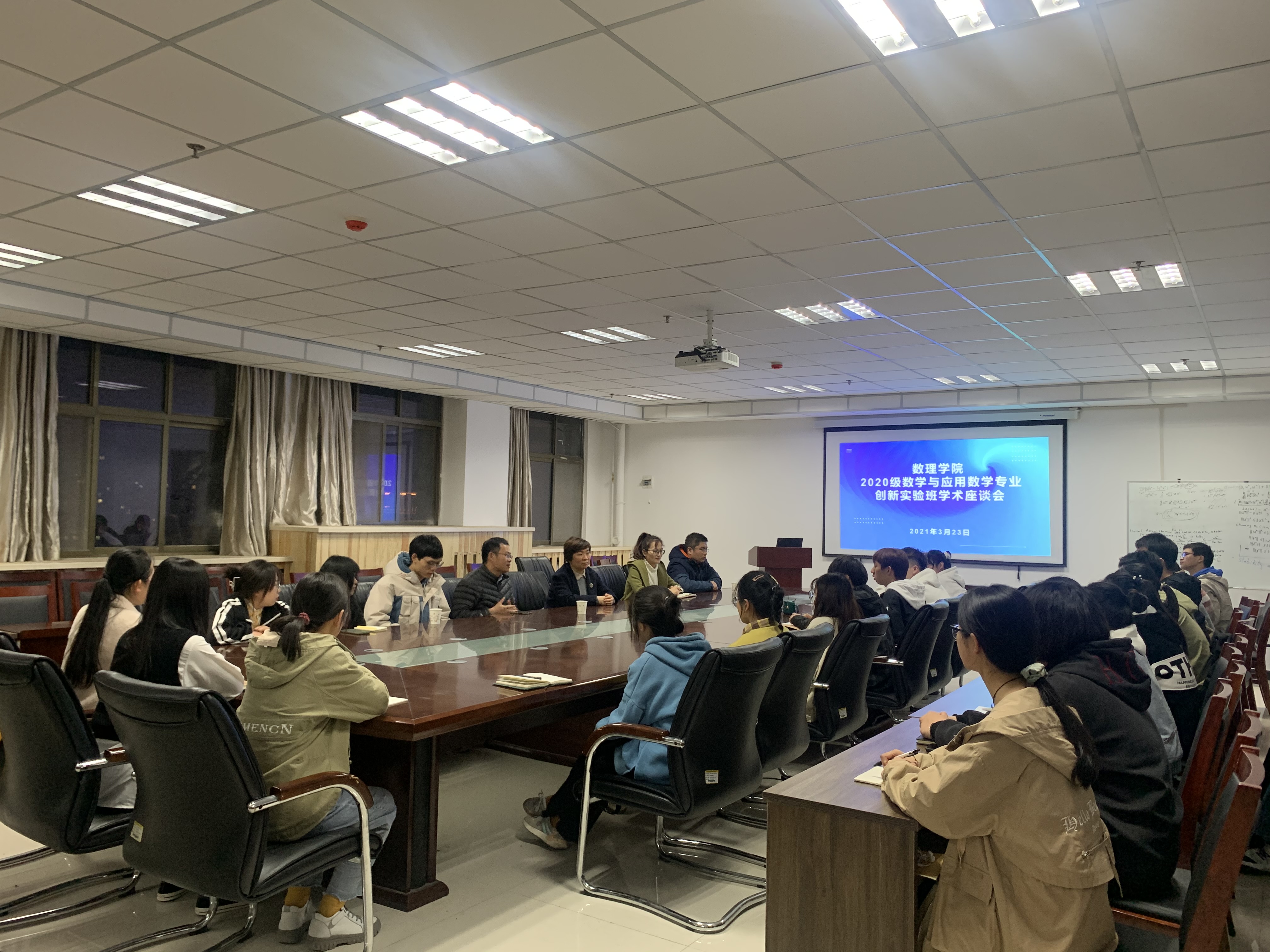 2021年3月23日晚上,数理学院2020级数学与应用数学创新人才实验班学术座谈会在综合楼2030召开。本次座谈会特邀武汉大学教授张继伟作为主讲人,数理学院院长赵艳敏、创新实验班班导师岳晓鹏和辅导员王艳菲、仝婧出席会议。
