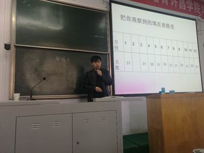 10月28日上午,在A合十六教室,数学与统计学院组织开展了“国培计划(2018)”小学数学学科微型课决赛活动。担任此次活动的评委老师有许昌市魏都区教研室高级教师宋晓红老师以及许昌学院数学与统计学院承担教学教法课程的吴志勤、王芬玲、宋永志三位教授。