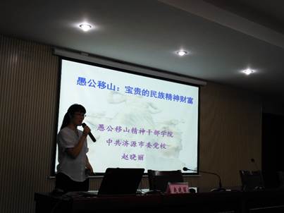 此次培训主要采取专题讲座、体验教学和现场教学等方式进行。在专题讲座中,愚公移山干部学院赵晓丽老师为学员们讲解了“愚公移山”如何从一则寓言上升为一种民族精神,深刻领会了愚公移山精神的内涵和新时期弘扬愚公移山精神的重要意义。在体验式教学中,学员们在王屋山天坛神路实地体验了搬石移山,在身体力行中感悟愚公的智慧、毅力和志向,真正体会了“开天辟地、敢为人先,百折不挠、挖山不止,万众一心、顽强拼搏,奋斗奉献、造福大众”的愚公移山精神。在现场教学过程中,学员们参观了愚公移山精神发祥地王屋山和当代愚公移山造堤——小浪底爱国主义教育基地,认真聆听了讲解人员的生动讲述,并在愚公移山群雕前集体诵读了《列子·汤问》中的《愚公移山》一文和毛泽东《愚公移山》的精彩片段。