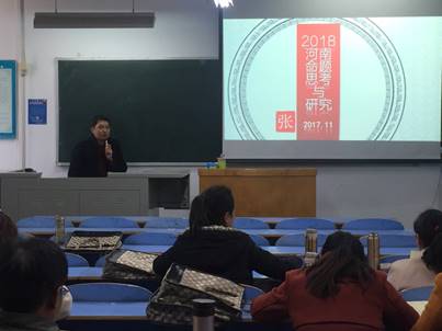 2017年11月22日下午,教学名师、郑州回民中学(郑州六中)教务副主任张恒山老师来到我校,为我校“国培计划(2017)”乡村教师访名校项目主干课程(初中数学)的学员们做了主题为 《河南中考2018命题思考与研究》的报告。