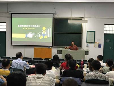 2017年7月16日上午,在A合十五教室,应许昌学院数学与统计学院邀请,开封市教育局原副局长、全国中小学教育督导评估专家马大建老师来到许昌学院,为我校 “国培计划(2016)”教师培训团队置换脱产研修项目(初中数学)的学员们做了主题为《基础教育的使命与教师成长》的培训。