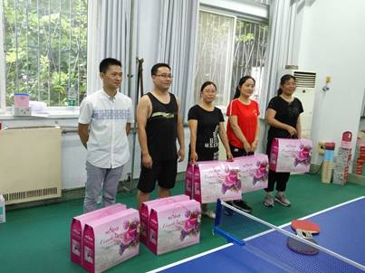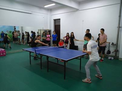 下午三点,根据抽签情况,各项比赛陆续拉开了帷幕。由于人员较多,所以比赛分为淘汰赛和决赛两个阶段,决赛定于在数学与统计学院工会活动室举行,淘汰赛阶段则在活动室外的乒乓球场地举行。天气虽热,比赛场上却是劲头十足,各位选手挥洒汗水、展现活力,享受着比赛的乐趣与收获,赛场外,队友自发组成啦啦队的助威,叫好声接连不断。乒乓球比赛中直拍、横拍、扣球、旋转球、狐线球等精湛的球技展示让人目不暇接,参赛选手以高超的技术和认真的态度赢得了观众的阵阵掌声。