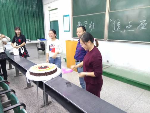 座谈会期间,班主任老师带给了广大学员们一个惊喜,向大家公布说今天恰好是马永虎老师和耿红霞老师的生日,所以特地给两位老师买了一个大号的蛋糕,大家纷纷向两位老师表示恭喜,一时间教室中洋溢起欢乐的气氛。
