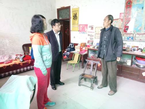 10月15日上午,为进一步落实和推动“精准扶贫”工作,在数学与统计学院党总支书记牛裕琪的带领下,总支委员周宏宪、沈会焘、杨林一行来到艾庄乡袁庄村看望了一对一结对帮扶对象袁国义一家,对他们开展了走访慰问活动。