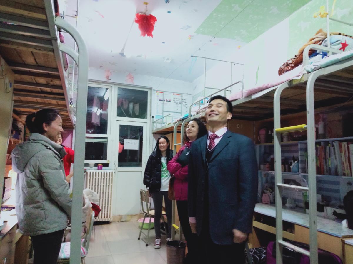 随着新年的结束同学们也迎来了新学期。党总支副书记苗宝军、团总支副书记余璐和辅导员杜娟亲自带队,领着检查小组分别进入每一间宿舍。在检查过程中,党总支副书记苗宝军亲切地与同学们进行了交流,同时他还询问目前是否适应了学习生活,希望同学们在学习生活上遇到问题一定要及时跟辅导员反映。辅导员杜娟看到有的同学在灯光比较暗的地方学习,就告诉他们要保护眼睛,努力完成学业的同时也要注意身体健康。团总支副书记余璐则仔细看了同学们的宿舍环境,她说安全用电很重要,一旦宿舍某些设施出现问题,一定要跟宿舍管理人员反映,确保生活方便。