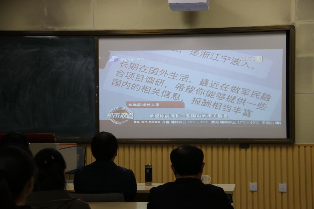 为了全面落实总体国家安全观,进一步增强全校师生的国家安全意识。数学与统计学院于2019年4月16日晚七点,在B2四楼多功能教室播放了由省国家安全厅制作的专题片《捍卫国家安全 校园里的“暗战”》。数学与统计学院党总支书记牛裕琪、院长申建伟、副院长赵艳敏,以及部分教职工学生一同观看了该专题片。