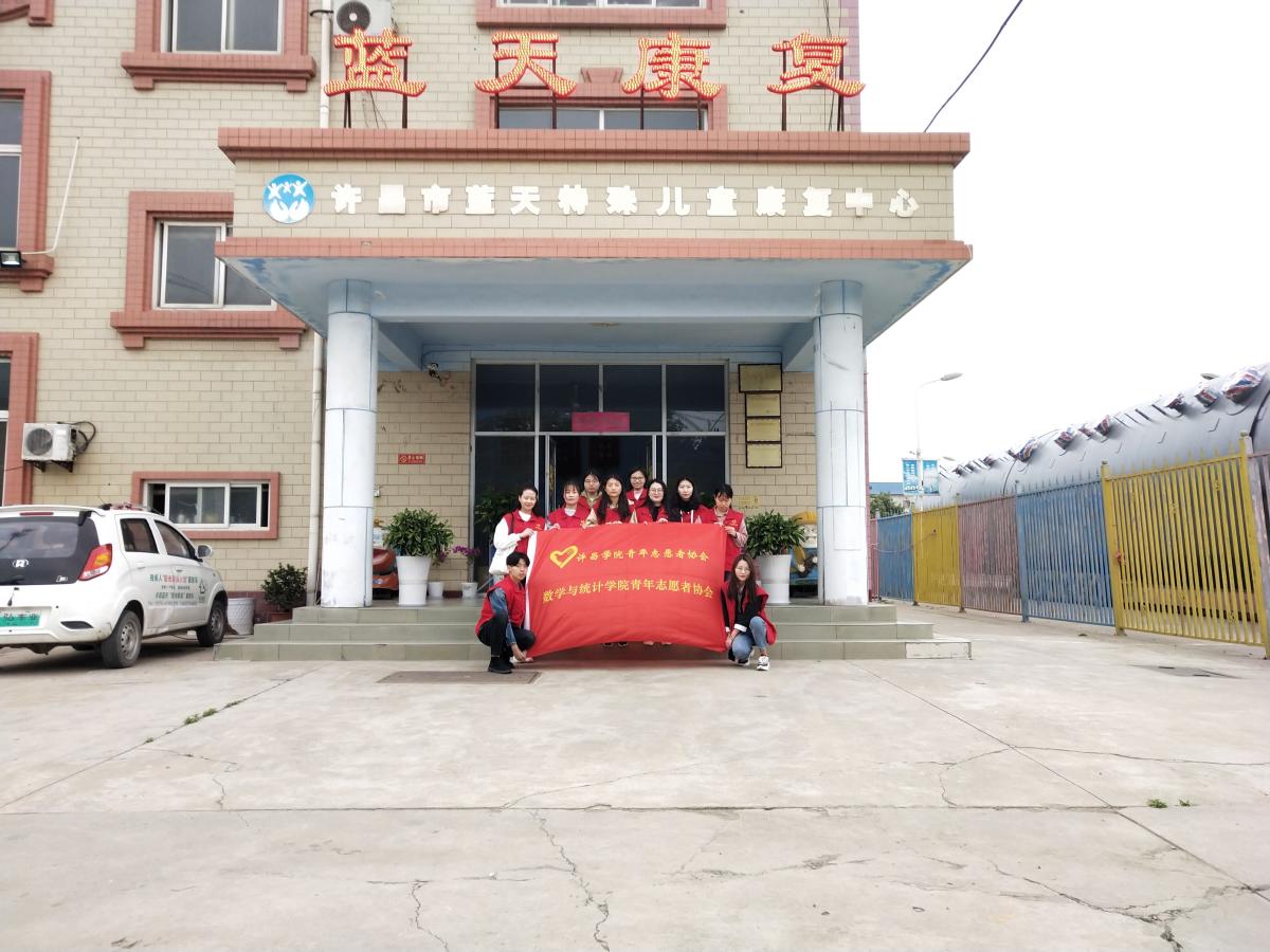 2019年4月27日,数学与计学院党员发展对象在许昌市蓝天康复中心进行志愿者服务活动。本次活动由数学与统计学院青年志愿者协会组织,参加此次活动的为数学与计学院第61期党员发展对象们。
