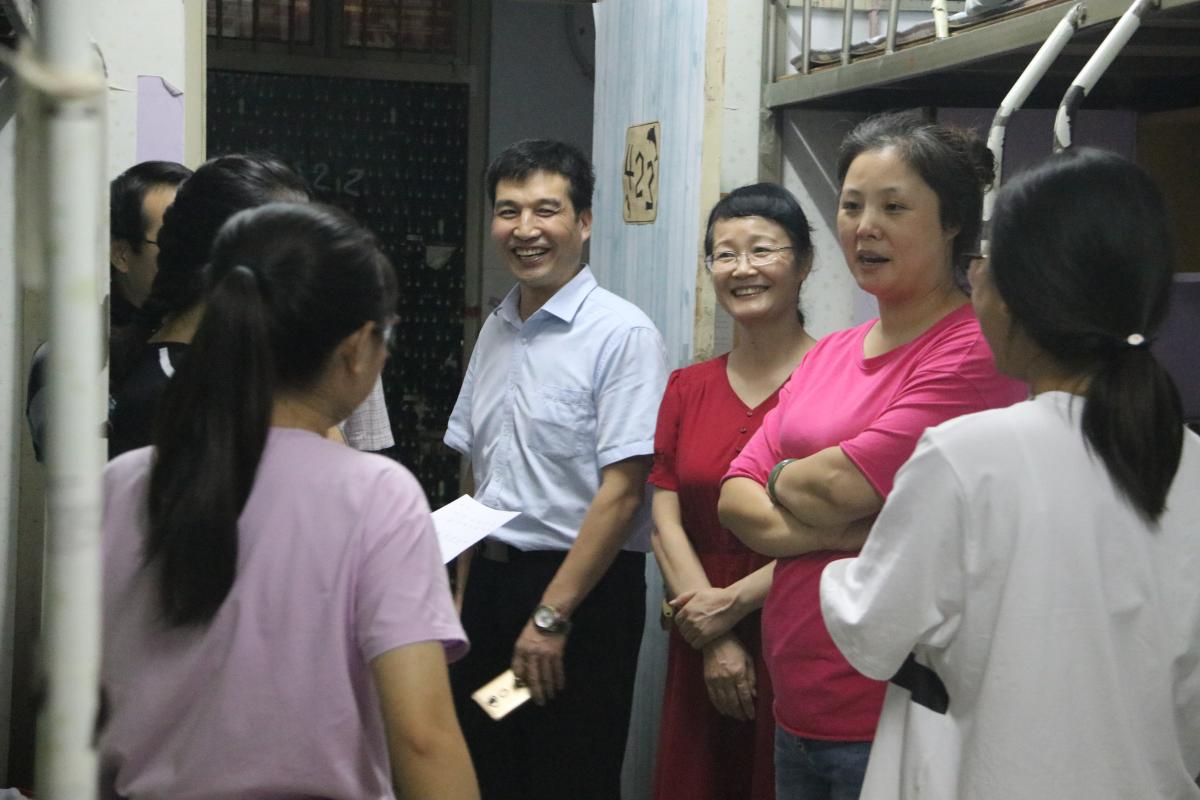 2019年9月5日晚七点,许昌学院数学与统计学院党总支书记牛裕祺、院长申建伟、副院长周宏宪、党总支副书记苗宝军、辅导员杜娟等领导老师来到宁一、宁三看望我院19级新生。