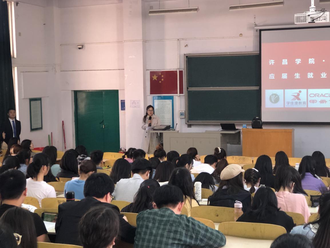 王艳菲老师对甲骨文学佳澳老师们的到来表示了欢迎。作为许昌学院长期合作的优质伙伴,甲骨文学佳澳每年都会为同学们送上各种精彩而实用的知识分享和行业经验。这次《应届生就业形势解析》的主题讲座,是针对目前大三年级同学们的普遍问题和需求,为大家送上的专属福利!