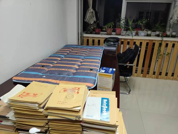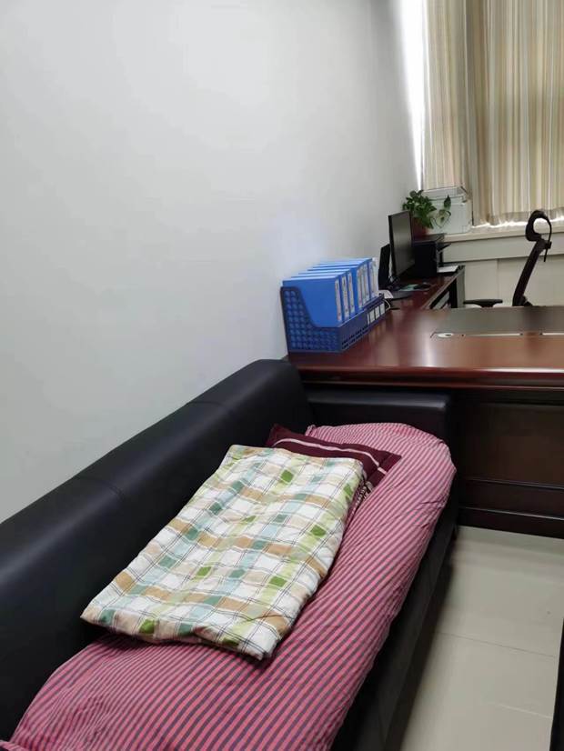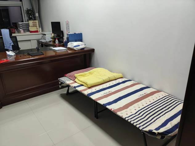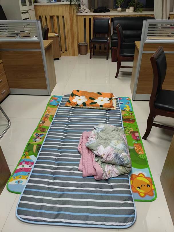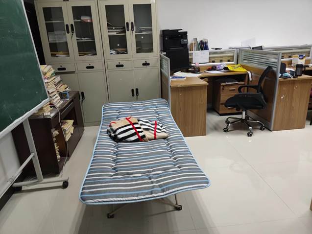 数理学院教师志愿者驻守校园为师生服务。他们从日常办公到夜晚休息,打破了常规的居家生活,在办公室搭起了简易床铺,驻起一座座“抗疫堡垒”。