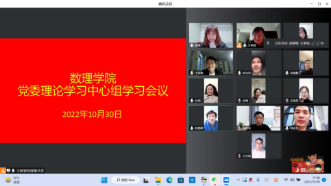 2022年10月30日,数理学院召开党委理论学习中心组(扩大)集中学习会议,全体成员及辅导员参加会议。