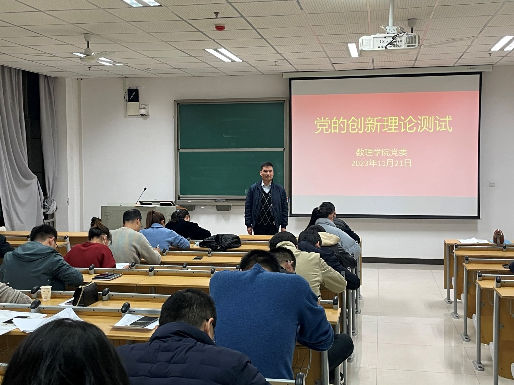 为深入学习贯彻习近平新时代中国特色社会主义思想和党的二十大精神,以竞赛促学习、以学习促实干,1121日晚,数理学院在E-606教室举办了“强化理论学习,持续推动主题教育”为主题的2023年度下半年党的创新理论竞赛。数理学院党委书记苗宝军、院长牛裕、党委副书记孔琪、副院长周宏宪、郭延涛,学院全体教师党员参加竞赛。