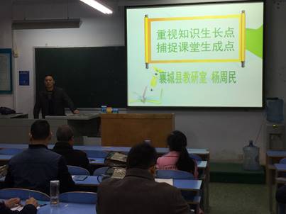 2017年11月15日上午,在B2-301教室,高级教师、襄城县教研室数学教研员杨周民老师为我校“国培计划(2017)”置换脱产研修项目初中数学班的学员们做了主题为《重视知识生长点,捕捉课堂成长点》的报告。