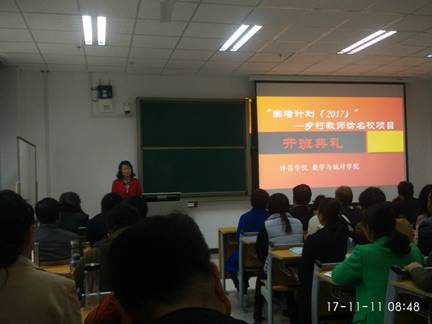 2017年11月11日上午,“国培计划(2017)”乡村教师培训项目初中、小学数学班开班仪式在E-106多媒体教室举行。许昌学院继续教育学院党总支书记赵新军老师出席开班仪式并讲话。数学与统计学院党总支书记牛裕琪、副院长赵艳敏、副院长周宏宪以及班主任、学习导师等相关人员和150余名国培学员一起参加了开班典礼,开班典礼由赵艳敏副院长主持。