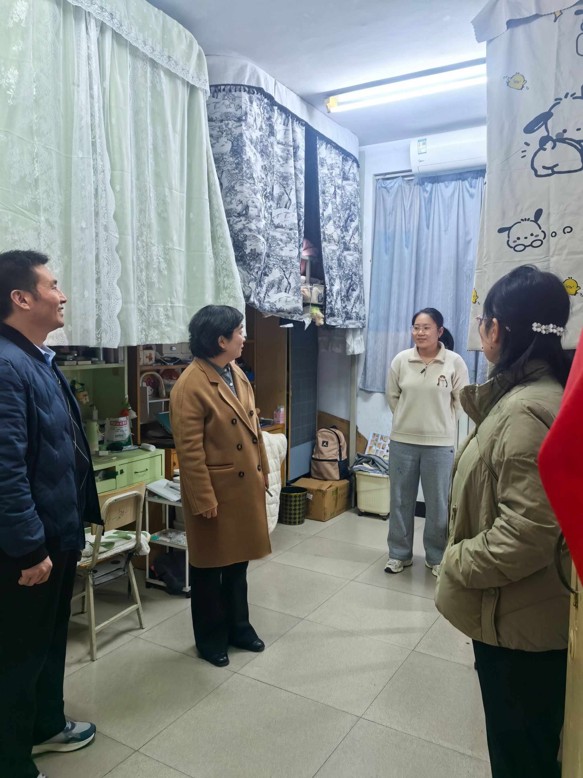 在宁园四号楼,赵艳敏副校长走进女生宿舍,与学生亲切交流,询问学生日常安全意识和宿舍生活情况。