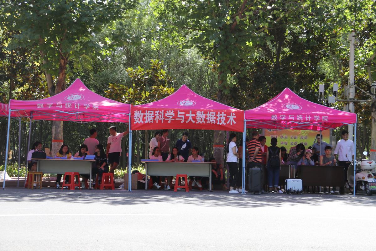 八方来客,相约九月,载着父母的殷殷期盼,又一批新的面孔齐聚于数学与统计学院,新生学子们已叩响大学殿堂的大门。2018年9月7日,由数学与统计学院学生会、青年志愿者协会志愿者共同组成的迎新小组,全身心的投入迎新工作当中。数学与统计学院党总支书记牛裕琪、党总支副书记苗宝军、辅导员杜娟老师高度重视迎新工作,为确保迎新工作的顺利进行,曾多次前往迎新地点进行指导。