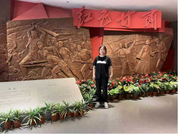 在甘肃省博物馆队员张新瑞了解了红军在甘肃长征的过程并在讲解员生动讲解下更全面的学习到了会宁会师的相关内容。