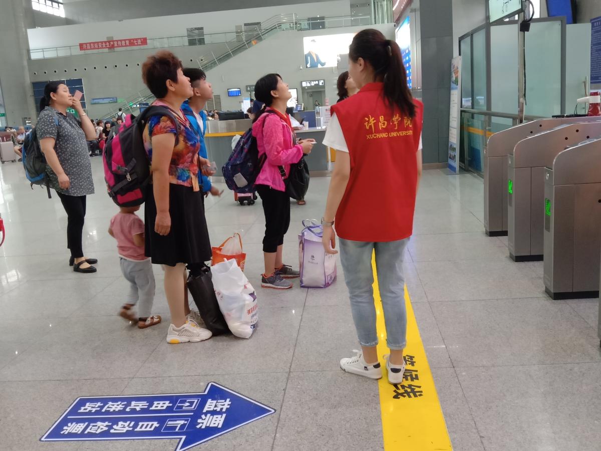 为开展好暑期志愿者服务活动,许昌学院数统院的志愿者们提早做好志愿者岗前培训,要求志愿者在服务时,为旅客提供“微笑、真诚、优质、用心”的志愿服务,为许昌市文明城市窗口建设贡献自己的一份力量。