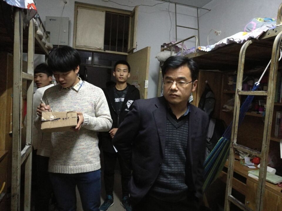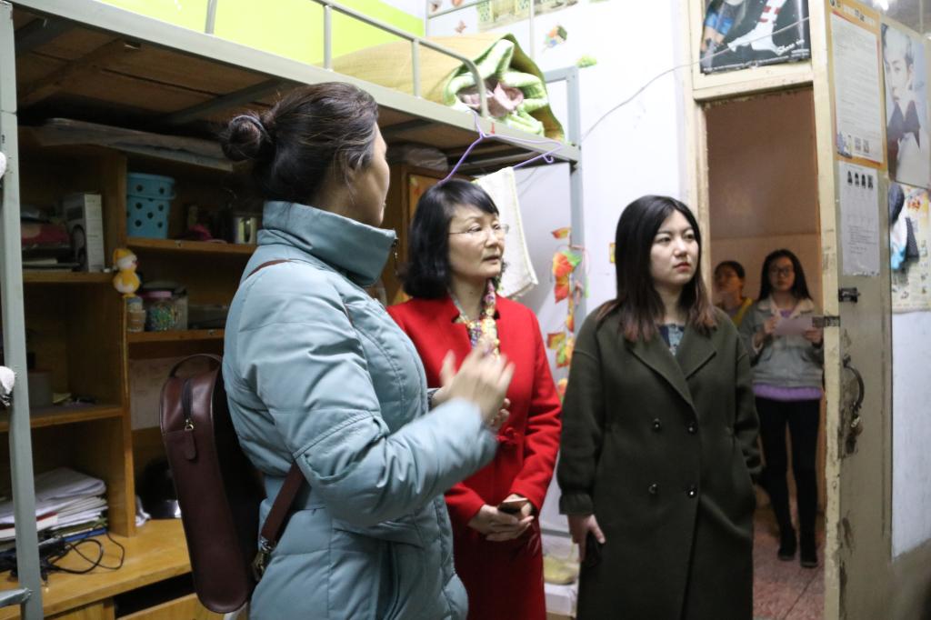 为贯彻落实学校“两会”期间学生安全稳定工作的有关安排,2017年3月6日晚九点半,数学与统计学院党总支书记牛裕琪、副院长周宏宪、团总支副书记余璐、辅导员杜娟,带领院学生会主席团及生活部全体成员,对我院四个年级的学生宿舍进行了安全文明卫生大检查。牛书记和周院长兵分两路,带领两路人马对女生宿舍和男生宿舍分别进行了检查。重点检查学生私自外宿、夜不归宿、晚归,使用违章电器,在宿舍豢养宠物及宿舍经商等情况。