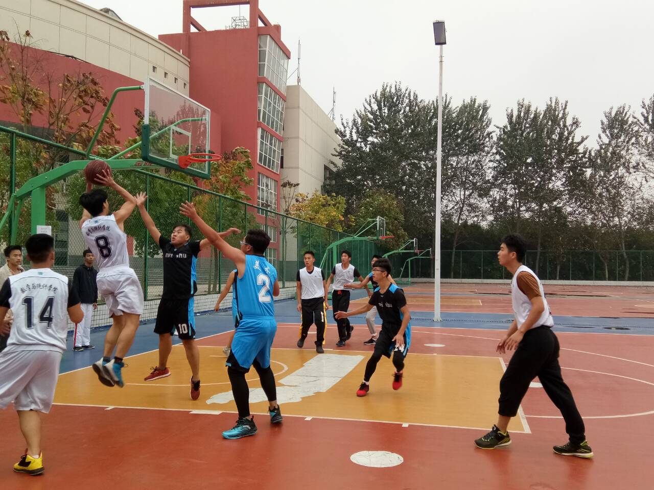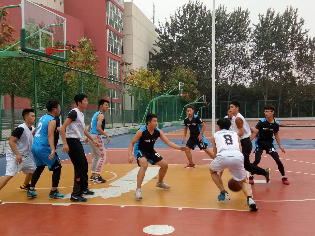 2016年10月22号下午两点半“振兴杯”篮球赛于艺术楼前的篮球场展开,对阵双方分别是数学与统计学院和美术学院。
