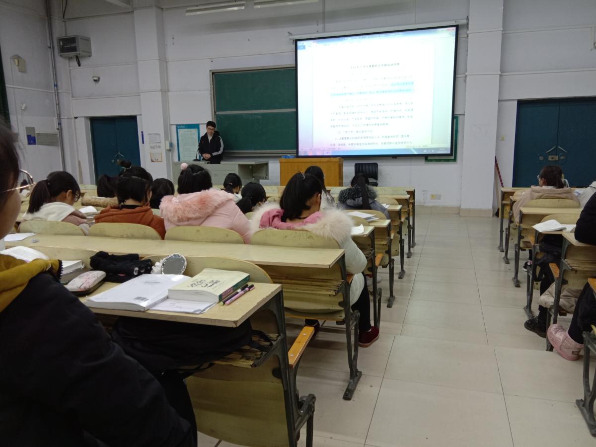 2019年1月6日晚七点,数学与统计学院学生自管会主席孙自豪在B合五教室给18级全体学生开展了有关寒假社会实践活动的会议。