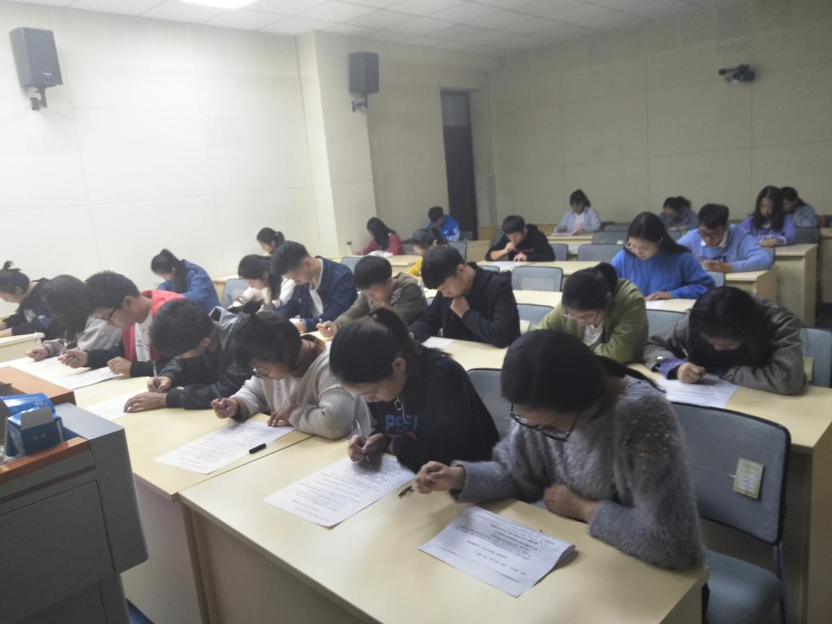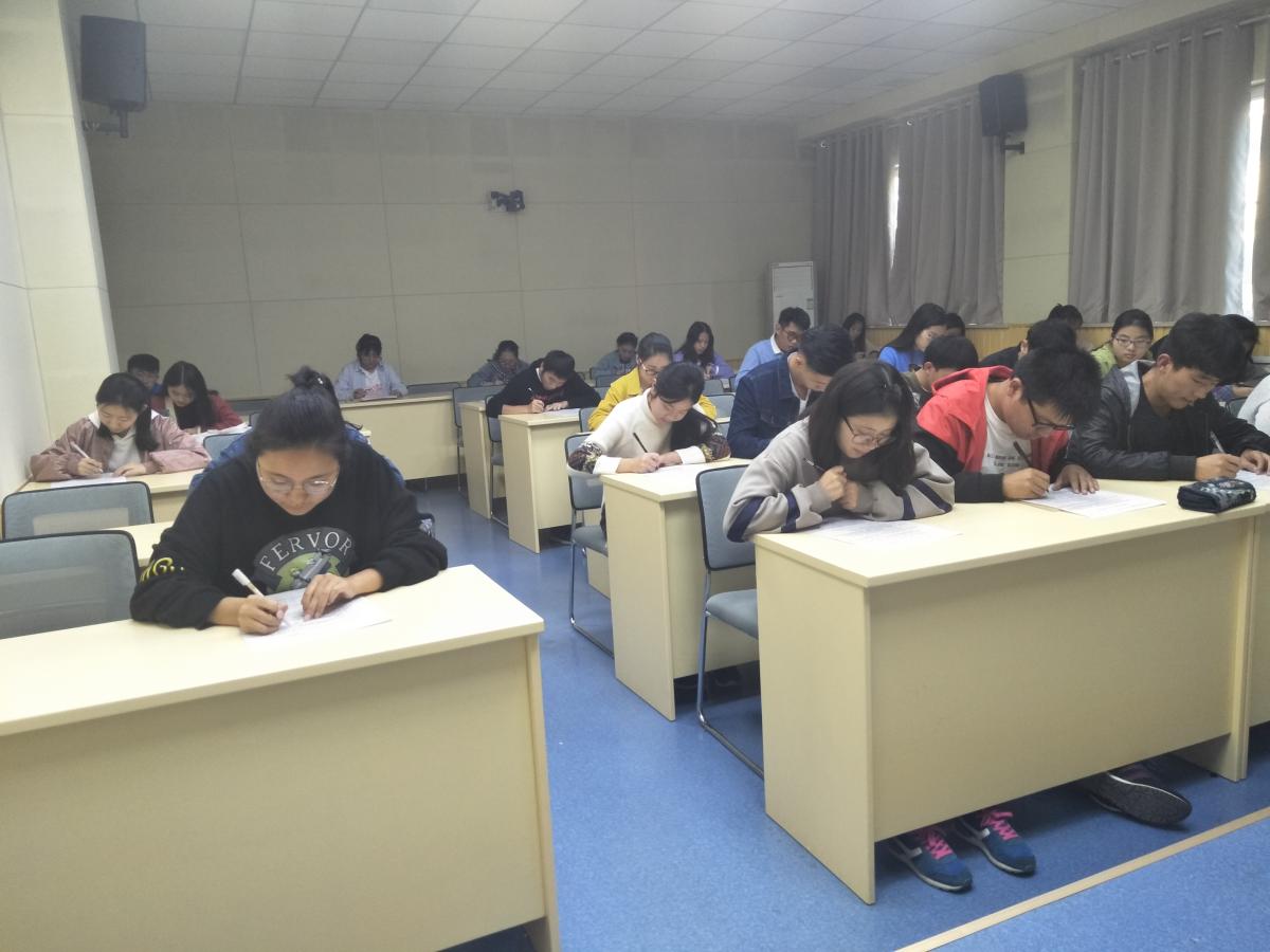 为了深刻领悟“十九大”会议精神,检验团员对十九大精神以及团的基本知识的掌握情况, 10月29日下午4点40分,数学与统计学院团支部组织了30位共青团团员于B2学院楼四楼录播室进行了“团务基础知识”与“十九大”精神应知应会测试,由我院党支部青年委员全程监考。