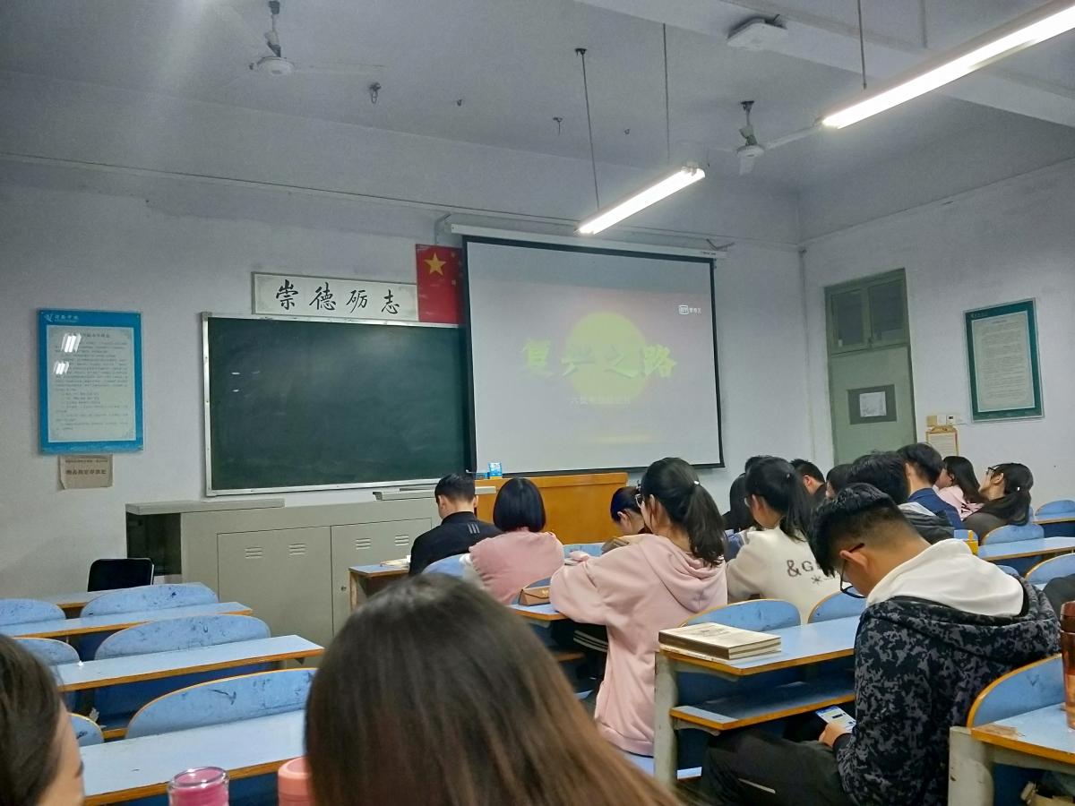 为进一步加大对入党积极分子的培养教育力度,增强大学生对党史的了解,2018年10月26日晚7:00,数学与统计学院在B2–303教室开展了分党校培训——《复兴之路》视频教学。