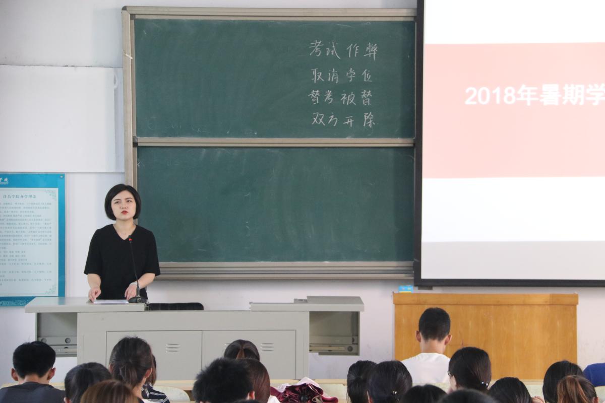 大会伊始,余老师向在座学生提出三点要求,第一注重离校安全问题。同学们必须严格按要求准时离校,做好宿舍贵重物品保管,注意往返安全、以及假期人身和财产安全。第二暑期兼职或者参加社会实践活动的安全问题。外出打工必须要征求家长意见,并将实践地点、内容、电话等告知家长放假期间。第三暑假出行安全问题。切实注意防水、防火、防地质灾害等,特别要严禁私自到河流、湖泊、水库等处游泳,避免溺水伤亡等事故发生。注意交通安全,禁止无证驾驶,禁止乘坐无牌、无证、无营业执照的车辆,防止事故发生。严密防范手机、电话、网络等欺诈行为,不涉足非法传销活动。