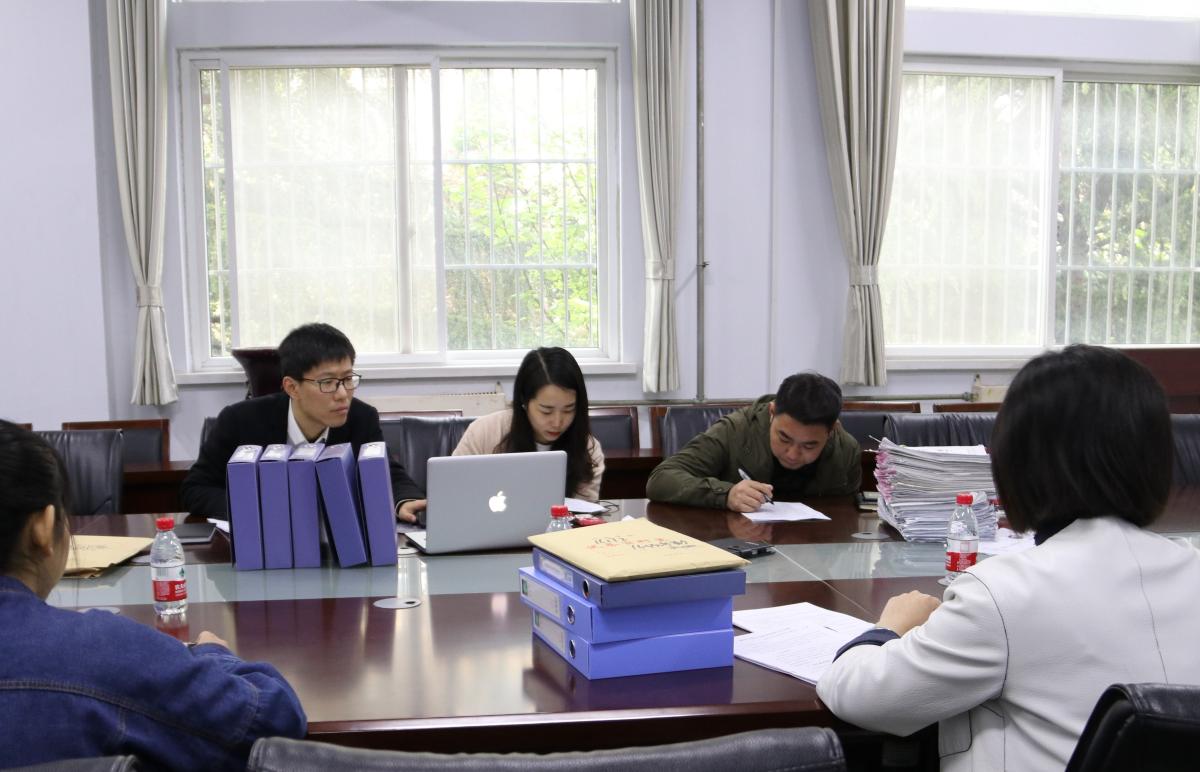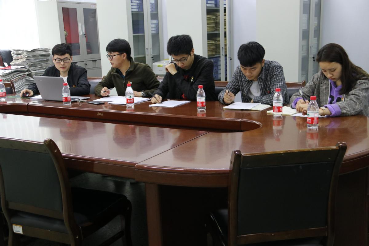 会前易老师介绍了有关五四红旗团总支评选要求以及此次会议的主要流程,接着宣布会议正式开始。首先余老师就数学与统计学院2017-2018学年的团学工作做总结性的汇报,数学与统计学院学生会主席孙自豪对数学与统计学院学生会一年来的工作做述职报告。接下来会议进行第二项,易文翰老师及其他团委成员根据叙述内容对相关材料进行核实,并就具体工作内容提出问题并进行讨论,最后由考核小组共同给出成绩。于此,学生会二级分会评选的考核也在同时进行着,校学生会副主席杜帅衡带领的校学生会考核组对数学与统计学院学生会2017-2018年度的工作内容进行审核。