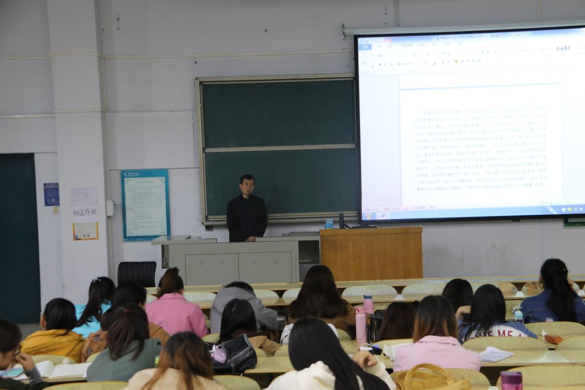 党课是对党员和申请入党的积极分子进行教育的重要方式,为加强数学与统计学院入党积极分子对党的认知,提高党性修养。2017年11月5日下午两点半,数学与统计学院分团校组织同学们在B合五教室集中学习《马克思列宁主义、毛泽东思想、邓小平理论》、《科学发展观》和《习近平新时代中国特色社会主义思想》等重要思想理论知识,此次党课的主讲人为廖靖宇老师。