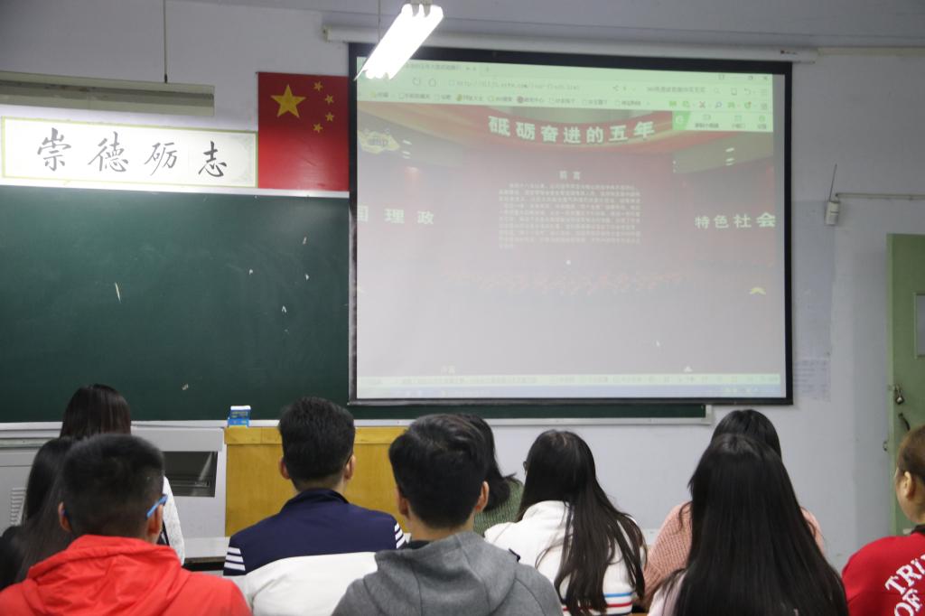 为了使学生亲身体验我们国家在党的十八大以来的5年的发展,感受党和国家迈入新时代的不平凡的5年,增强学生爱国情怀和民族自豪感,2017年10月28日晚上18点整,数学与统计学院分团校组织同学们在学院楼103教室集中观看“砥砺奋进的五年”大型成就展网上展馆,反响热烈。