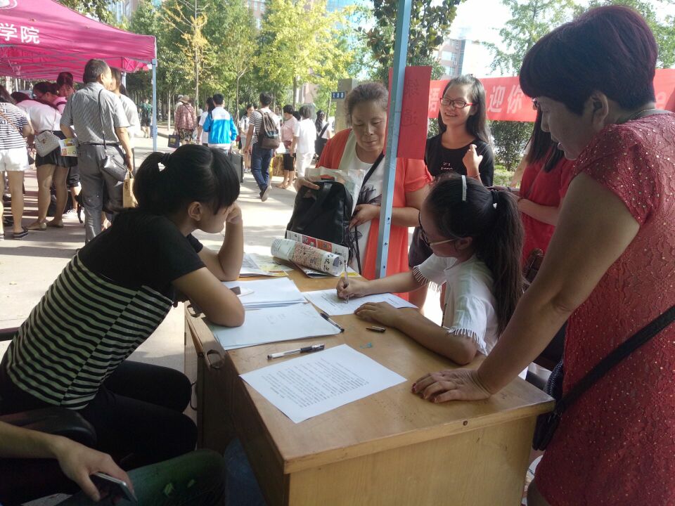 早上七点迎新人员全部到位。在报到帐篷处,八点多就见新生和家长们络绎不绝的身影。负责信息录入的迎新工作人员熟练的为新生办理交费、宿舍登记、办理校园卡等入学手续,并为他们提供各种咨询,解答家长提出的种种问题。为了照顾排队等候的家长同学,迎新人员搬运板凳、矿泉水,安置阴凉休息区。学院还为家庭困难学生开辟了绿色通道,提供助学贷款等服务。部分迎新工作者穿梭于迎新现场,为新生们搬运行李,期间也会向新生们简单的介绍学校的构局,生活注意点,为他们将来的大学生活提出自己贴身的建议。大家都坚持奋战在自己的岗位,忙得不亦乐乎。
