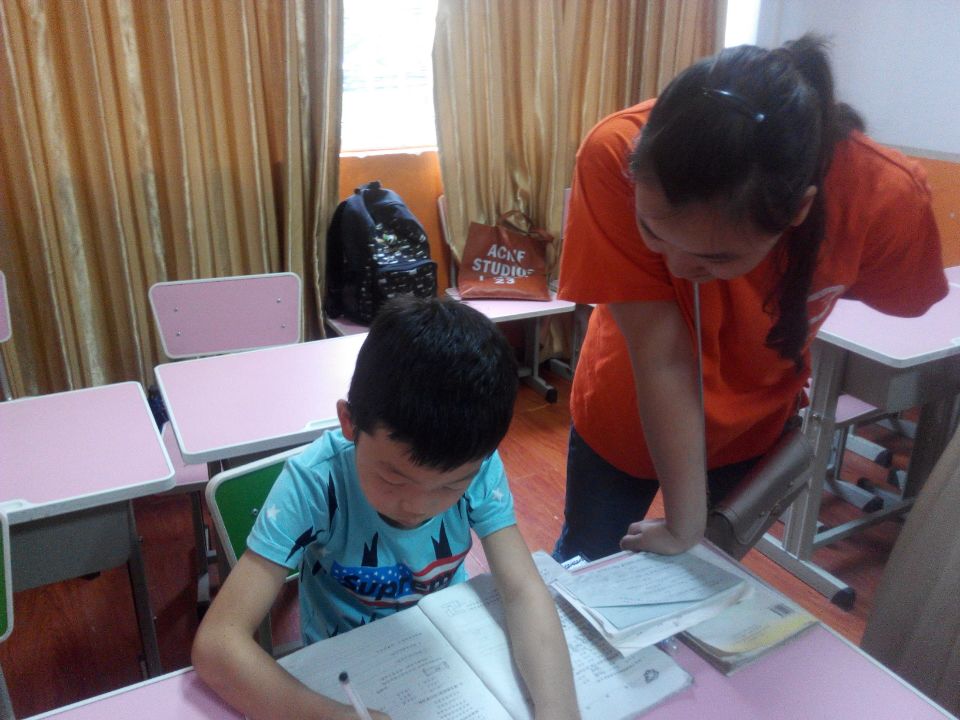 上午八时左右,队员们吃过早饭,在许昌县昂立国际教育机构的门口迎接小朋友们的到来,并且带他们找到上课的教室。小朋友们每天都很开心,见到实践队员们的第一句问的就是:“老师,我们那个老师来了没?”在这时间虽然不长的几天相处之下,小朋友们已经能够记住每一位实践队员的名字,孩子们期待队员们的到来。午休时分,更是离不开队员们的陪伴了,和队员们一起吃午饭,一起共享午休时光。下午便是小朋友们精力最旺盛的时候了,还没有到上课的时间,小朋友们便跑来办公室找队员老师们玩,好像一分钟都离不开一样。