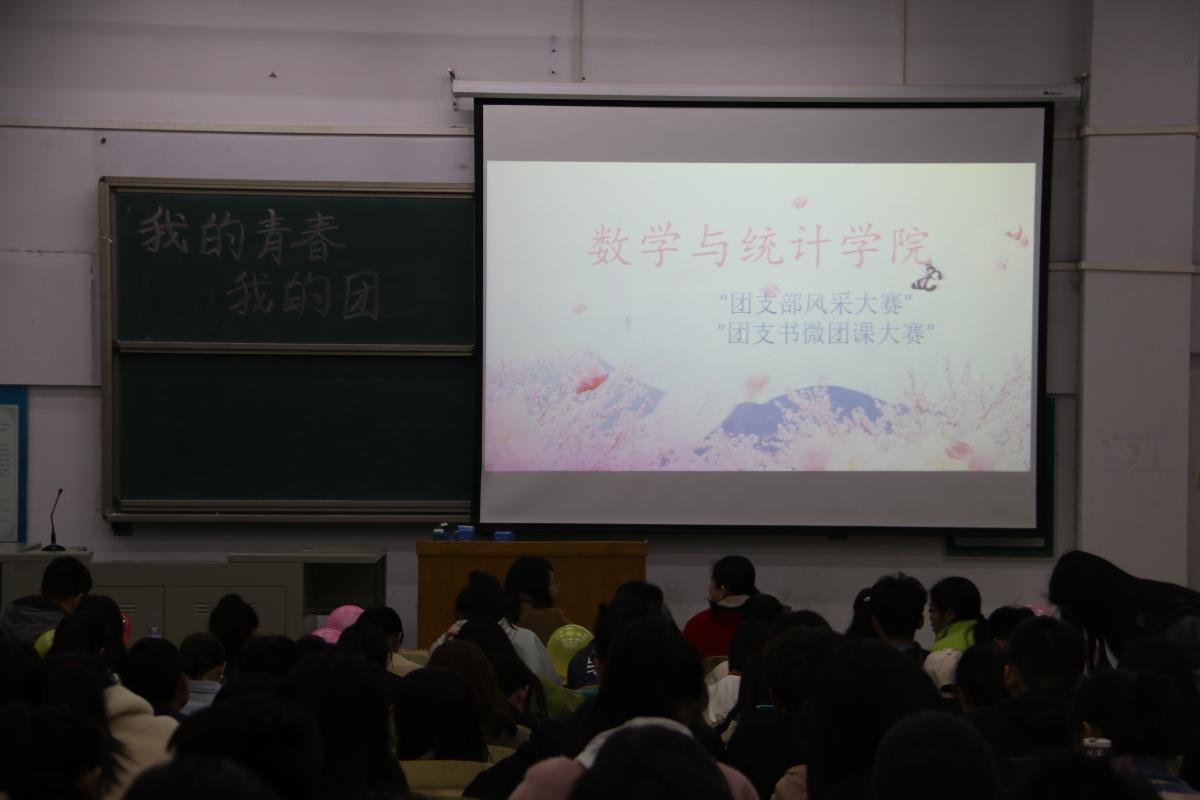 为了展示新一代大学生风貌,学习贯彻习近平总书记重要讲话精神。2019年3月24日晚上七点整,由数学与统计学院举办的“我的青春,我的团”团支部风采大赛于B合五教室隆重举行。数学与统计学院党总支书记牛裕琪、党总支副书记苗宝军、辅导员杜娟老师,17级、18级各班部分班导师出席此次活动并担任本次大赛评委。17、18级各班团支部参加此次活动。