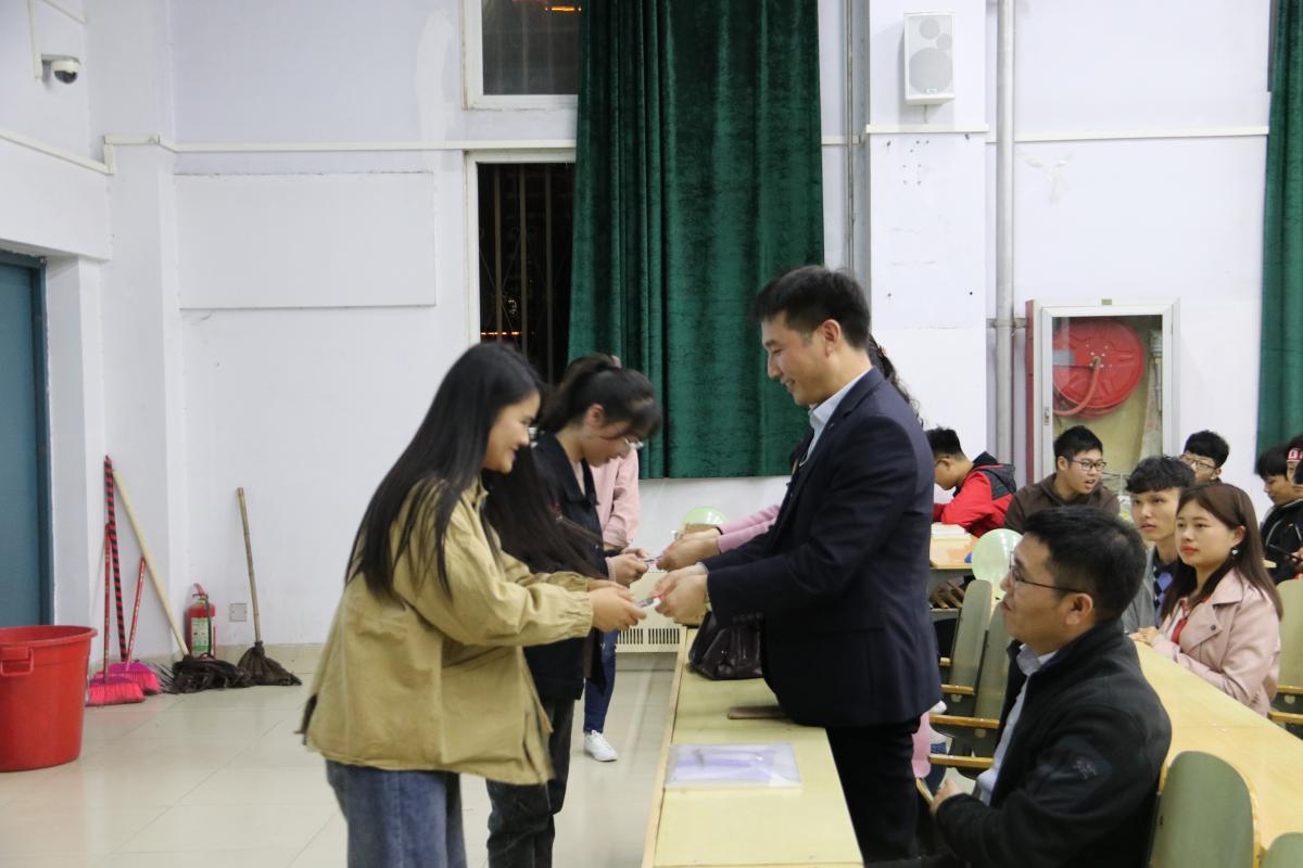 比赛在主持人宣读完规则之后开始。比赛中,各位参赛选手激情澎拜,伴随着PPT的精彩放映,每位选手慷慨激昂的讲着自己对学业生涯的规划。具特色的讲述,透露着广大学生对理想的憧憬。台下观众也不时迸发出热烈的掌声。虽然有一些参赛选手的表现欠佳,但是评委老师们依然积极鼓励了他们,并说到,大一的学生就开始做自己的学业生涯规划是他们所乐意见到的,因为学业生涯规划越早做对学生今后的发展越有利。比赛即将结束,由老师代表对此次比赛做了详细的总结。随后,主持人宣读了获奖人员的名单,并由党总支副书记苗宝军、辅导员杜娟老师以及各班班导师老师为选手颁奖并合影留念。