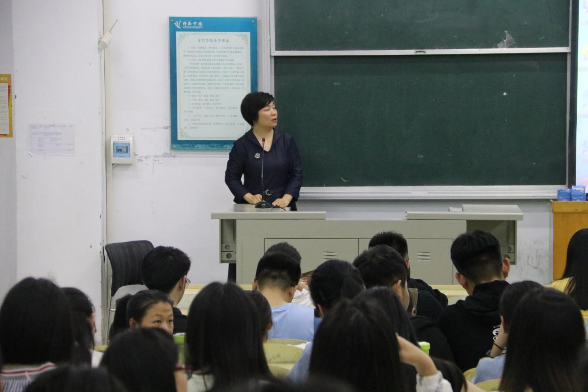 会议的开始,先由主持人讲解本次会议流程。然后,由副院长赵艳敏为同学们做考研指导。赵院长告诉同学们:考研一定要努力,要打好基础,要做好考研就要考博的准备。同时,赵院长也讲到了很多有关考研的知识。同学们都在很认真的吸取着经验。之后,便由三位今年考研成功的学生为同学们加油打气,并且讲述自己的考研成功的道路。第一位是伍慢,她和同学们分享着自己的亲身经历,告诉同学们考研应该怎么做。第二位是张敏,她是统计学专业的,所以她就根据自己的方法向统计学的同学们传授经验,同学们也都很积极的向她提问自己不懂的地方。最后一位是赵琳琳,她重点告诉同学们复习阶段分为基础、强化、冲刺三个阶段。每个人都把自己成功的方法,经验甚至用到的书籍全部奉献给了在座的同学们。