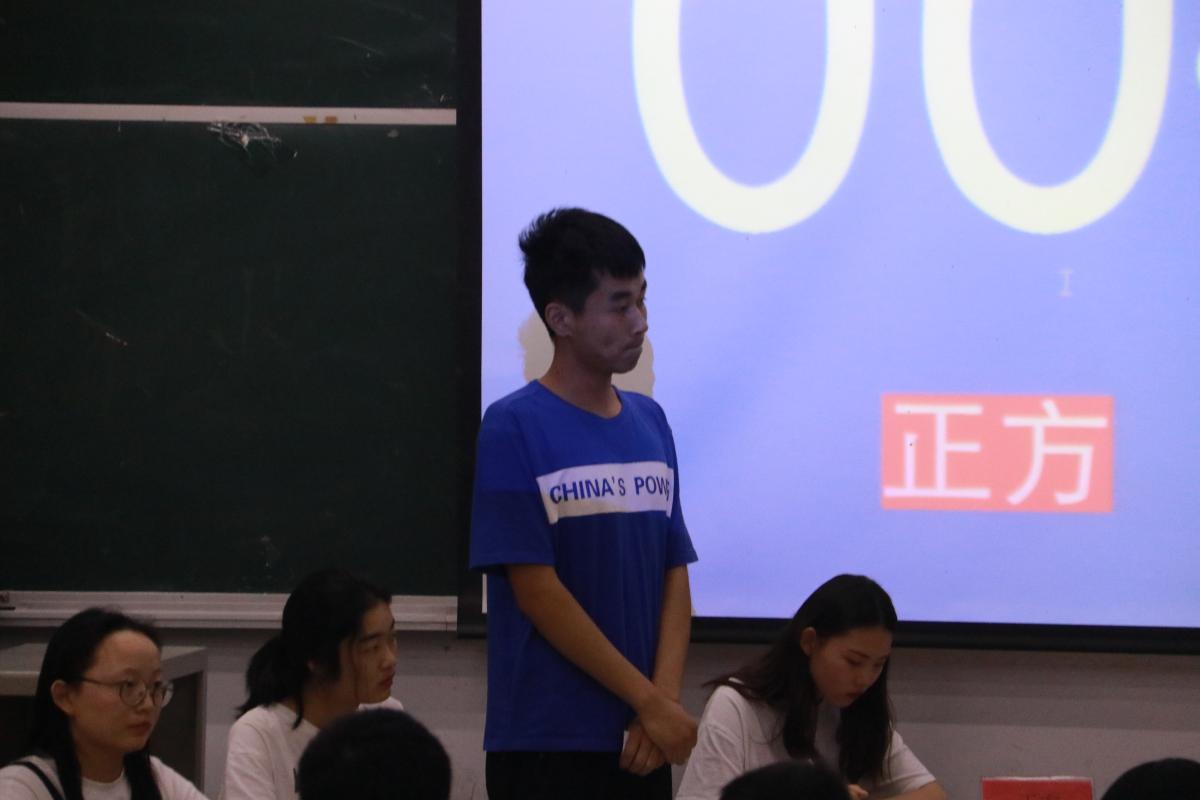 本次辩论赛共分为立论,攻辩,攻辩小结,自由辩论,总结陈词五个环节。第一场辩论赛是正方商学院18级人力资源管理二班团支部对战反方数学与统计学院18级数学与应用数学二班团支部,双方就高校产业化利弊大小这个辩题展开了激烈辩论。令人印象深刻的是反方四辩,在回击正方辩友过程中,出口成章,把自己的观点有力地传达给了评委和观众,使得观众席掌声不断。