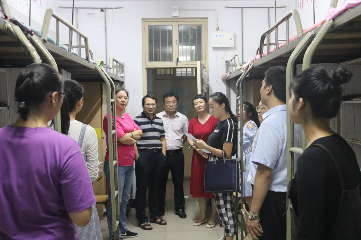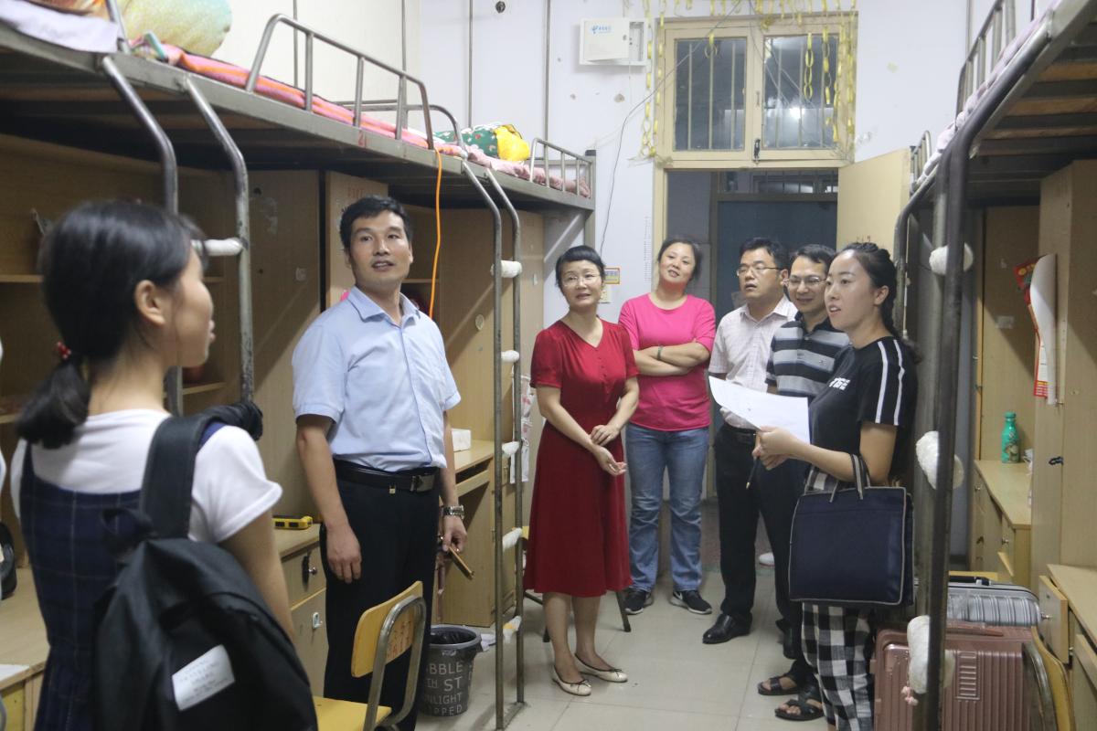 2019年9月5日晚七点,许昌学院数学与统计学院党总支书记牛裕祺、院长申建伟、副院长周宏宪、党总支副书记苗宝军、辅导员杜娟等领导老师来到宁一、宁三看望我院19级新生。
