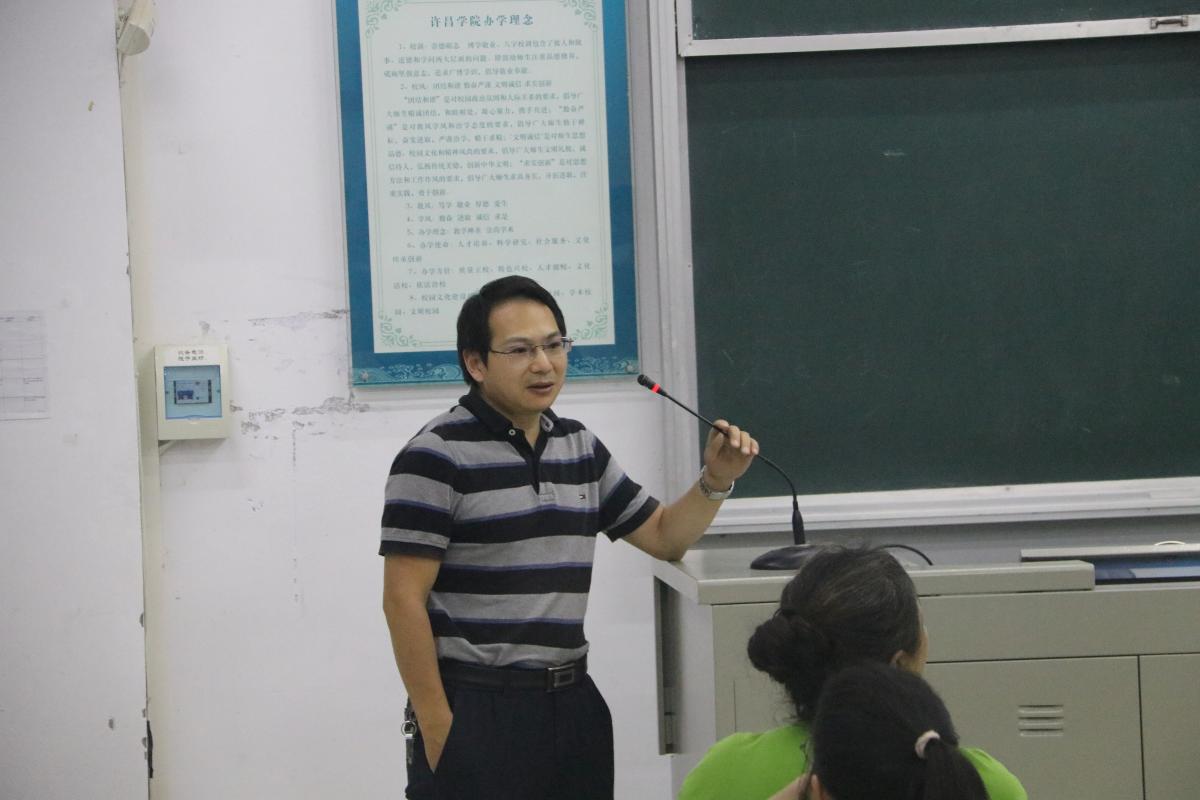 许昌学院数学与统计学院于2019年9月6日晚上七点在B合四教室召开了新生见面会。出席此次见面会的有数学与统计学院院长申建伟、党总支副书记苗宝军、辅导员杜娟老师、团总支副书记余璐,以及19级各班班导师和19级全体新生。