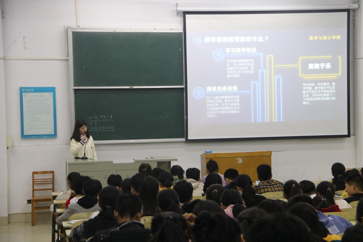 为了让数学与统计学院19级新生充分了解我院的三大特色社团,2019年10月21日晚七点,数学建模协会、数据黑蚂蚁社团、数学协会三大社团在B合六举行了社团见面会。