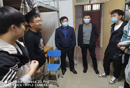 2020年10月9日晚7点,数理学院党委书记牛裕祺,院长赵艳敏,党委副书记苗宝军,副院长郭延涛,周宏宪,团委书记余璐以及新生辅导员仝婧老师和学生会部分成员分为三个小组前往新生宿舍了解新生入住情况。