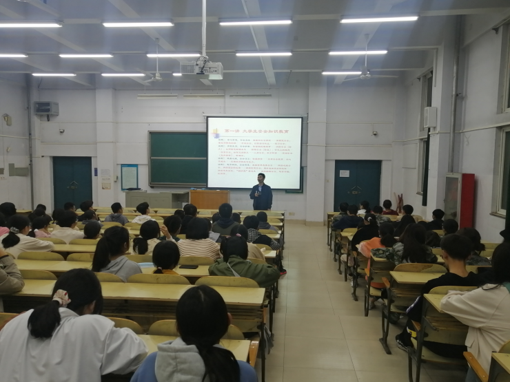 为了提高新生安全防范意识和自我保护能力,提升新生对校规校纪的理解。数理学院于2020年10月13日,在B2二楼的B合五教室开展大学生安全知识教育和校规校纪解读专题讲座,数理学院党委副书记苗宝军担任主讲人,全体2020级新生参与此次讲座。