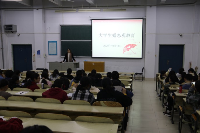 为引导新生树立健康的婚恋观,帮助新生正确处理恋爱与学业之间的关系。数理学院于 2020年10月16日晚上七点半,在B2三楼B合六教室开展大学生婚恋观教育。数理学院辅导员王艳菲老师担任主讲人,全体2020级新生参与此次讲座。