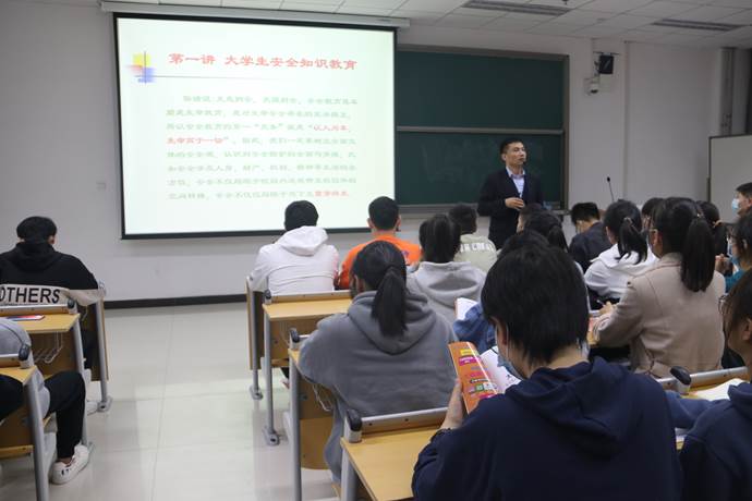 为了提高新生安全防范意识和自我保护能力,提升新生对校规校纪的理解。数理学院于2021年10月12日晚上7点,在文综楼E-109教室开展了大学生安全知识教育和校规校纪解读专题讲座,数理学院党委副书记苗宝军担任主讲人,21级新生参与此次讲座。