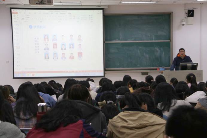 岳晓鹏老师首先向同学们展示了历年数理学院优秀学生的学习历程,激励同学们要刻苦学习,养成吃苦耐劳的好品质。接着岳晓鹏老师从专业目标定位、毕业要求、学制学分、课程设置等方面向同学们介绍了数学与应用数学专业的相关介绍,帮助了新生及早确立自己的职业理想,明确学习目标。最后岳晓鹏老师对同学们能在数理学院有所成就寄予了厚望。