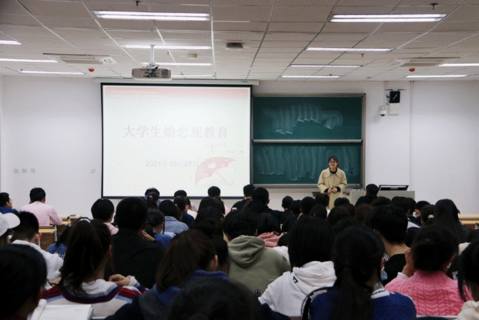 为了教育引导新生树立正确的婚恋观,数理学院于2021年10月28日晚上七点,在E-109教室开展了以“大学生婚恋观”为主题的专题讲座,数理学院18级辅导员王艳菲老师担任主讲人,21级全体新生参与此次教育。
