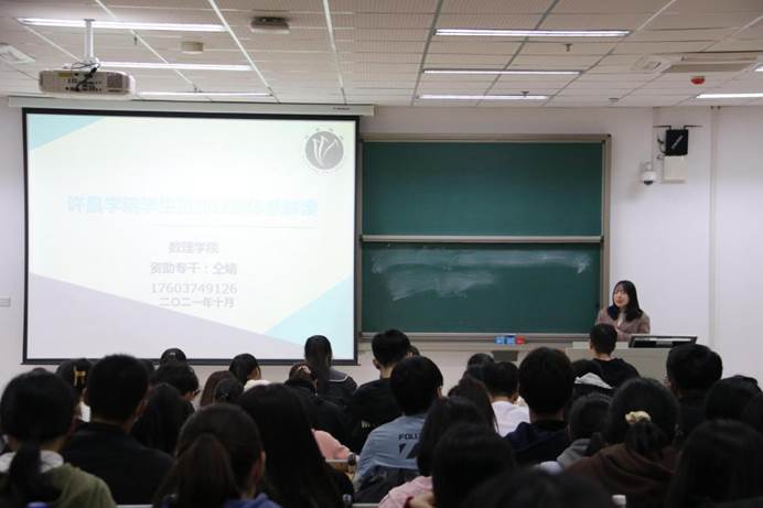 为了让新生了解我校的奖贷补助政策,帮助学生知晓各项资助政策、要求。数理学院于2021年10月28日晚七点,在E-109教室开展以“许昌学院学生资助政策体系解读”的专题讲座。数理学院资助专干仝婧老师担任主讲人,21级全体学生参与此次讲座。