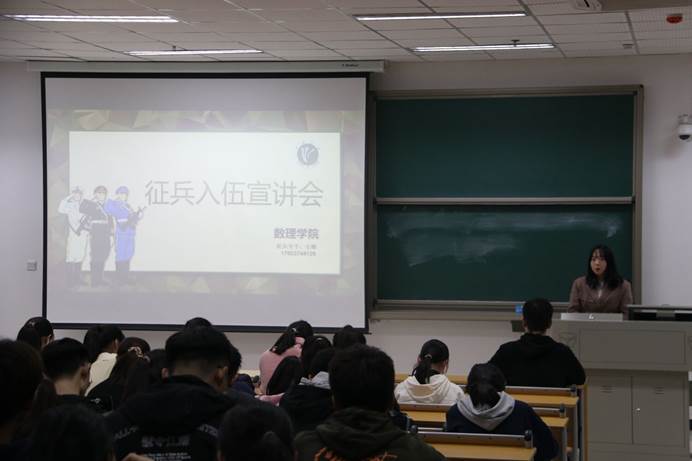 为宣传国家征兵政策,鼓励热血青年学子应征入伍,报效祖国。数理学院于2021年10月28日晚上7点,在E-109教室开展了“征兵入伍宣讲会”,数理学院20级辅导员仝婧老师担任主讲人,21级全体学生参与此次活动。