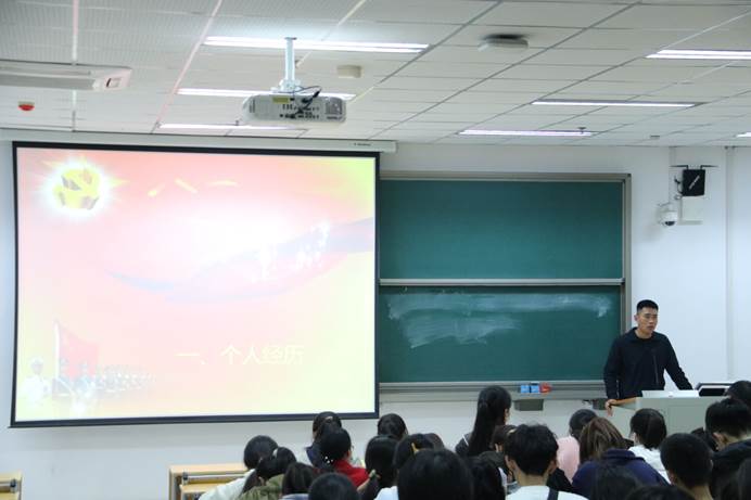 最后,仝婧老师邀请数理学院今年退役复学的熊烨毅和张浩同学分享了他们精彩的军旅生活,他们动情的讲述深深触动着在场同学,让同学们深切感受到了入伍后青春与热血。
