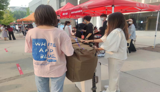 迎新工作如火如荼地进行着,到处都是迎新工作人员和学生志愿者忙碌的身影。有的举着数理学院字样的接待牌坚守在学校门口、引领新生从学校大门口去往报到处、有的负责帮助新生搬运行李、接待点的志愿者主要负责报到扫码、发放相关材料、解答新生疑惑,迎新工作有条不紊,秩序井然。志愿者们用热情与耐心为远道而来的学子提供的“一站式”暖心服务,很快消除了新生们初来乍到的陌生感,他们为新生奔波忙碌的身影成为一道道靓丽的风景。